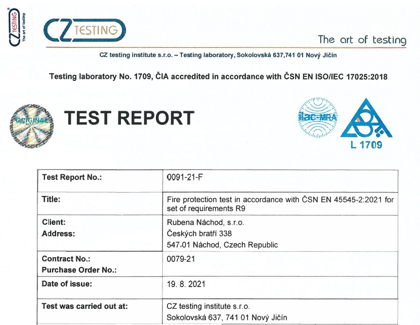 Rubena získala certifikaci pro své výrobky které vstupují do železničních systémů. Jde o normu CSN EN 45545-2 / R9.