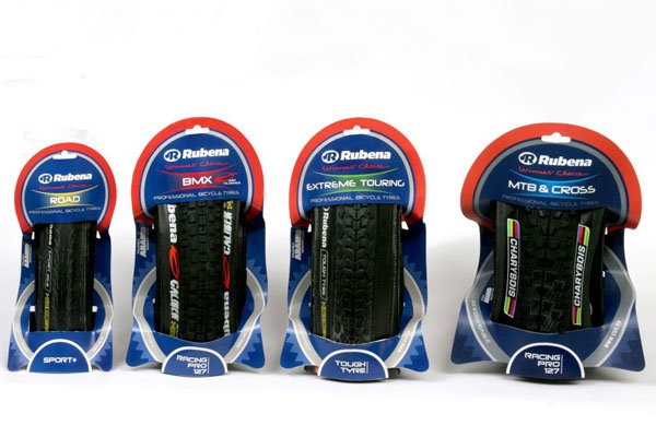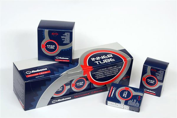 Die Graphik der neuen Verpackungen geht aus dem vereinheitlichten Design hervor, das die Marke RUBENA symbolisiert. Für eine besserere Orientierung der Kunden werden die einzelnen Fahrradreifen-Reihen farblich unterschieden. Für jede Kategorie wurde die Farbe eines graphischen Elements auf der Verpackung gewählt (rot – BMX, hellblau – MTB & CROSS, grün – EXTREME TOURING und gelb – ROAD).