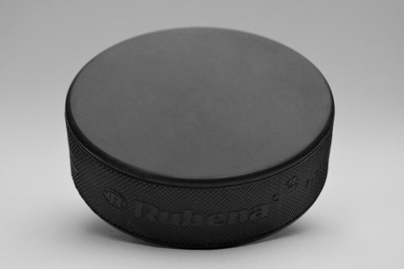 A standard ice hockey puck known to many ice hockey generations.