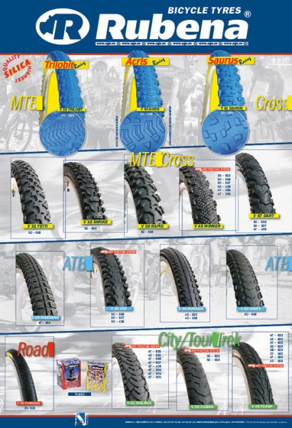 RUBENA a.s. připravila v segmentu výrobního programu Velopláště mnoho novinek, které jsou zobrazeny na nástěnném plakátu, vyvěšovaném v síti kooperujících maloobchodních prodejen.
