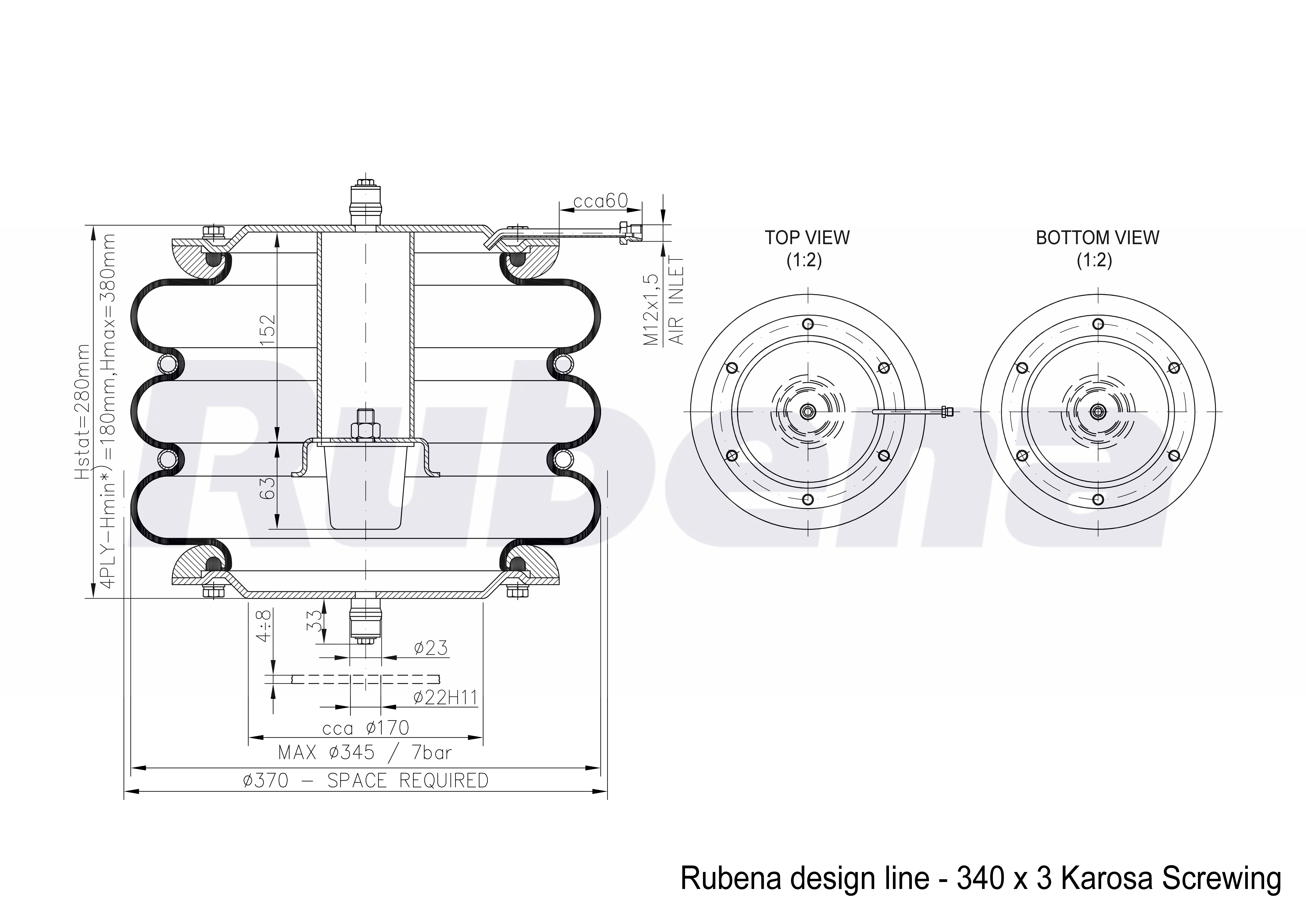 *) Given Hmin figure is only theoretical - this height is, in lower parts of the lift, influenced by the stop and the shape of a counterpiece = the lower lid. Assembly is struck onto a pin on the upper lid.