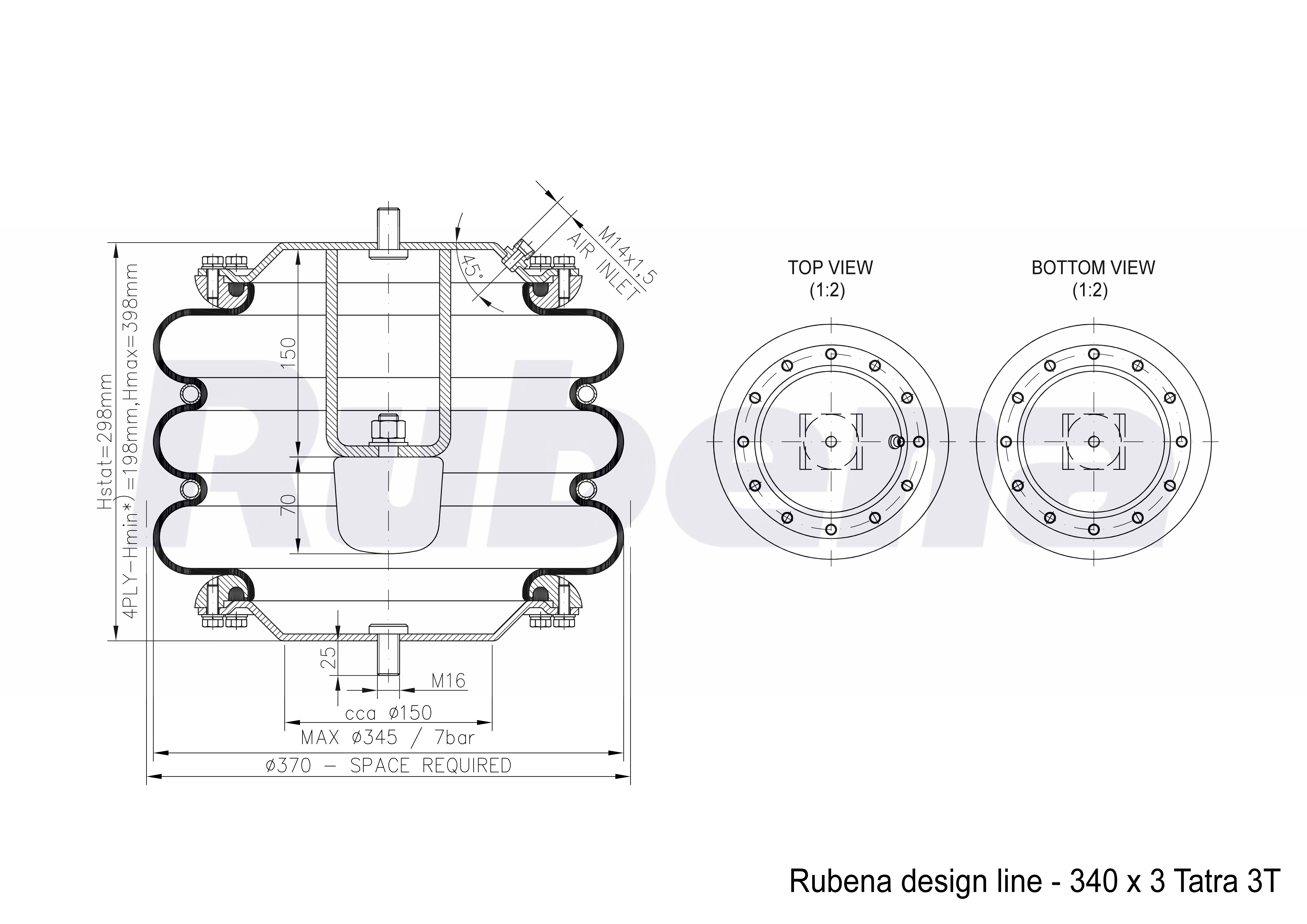 *) Given Hmin figure is only theoretical - this height is, in lower parts of the lift, influenced by the stop and the shape of a counterpiece = the lower lid. Assembly is struck onto a pin on the upper lid.