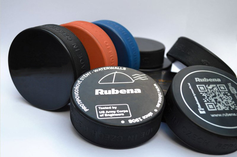 Ice hockey pucks have been manufactured in Rubena for more than 20-years. Pucks are manufactured in plant Náchod. The pucks are made of vulcanized rubber. The puck properties such as hardness, weight, thickness, rebound elasticity, flatness, diameter etc.must correspond IIHF norms, and the strictest requirements of the Canadian-American National Ice-Hockey League.